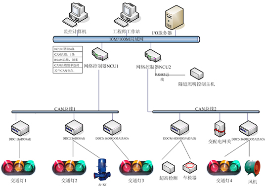 根据隧道技术要求,隧道设备监控系统一般如下图所示: