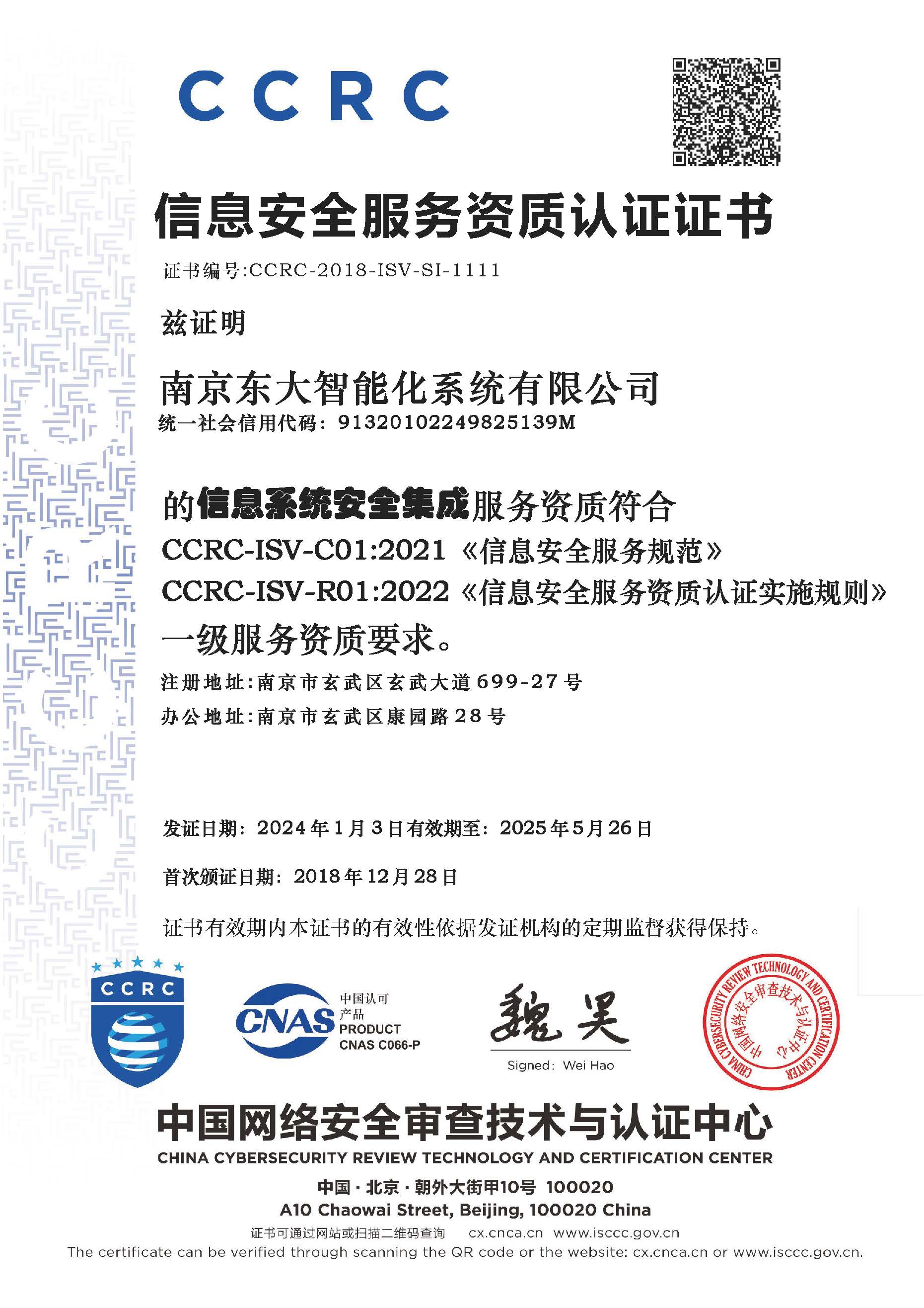 CCRC信息安全服务资质认证