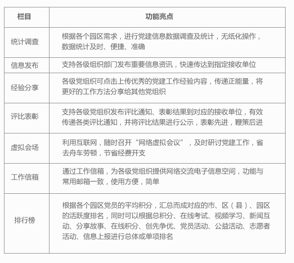 通过红旗飘飘 江苏省开发园区党建信息平台,党员可以随时进行在线学习、提高党性修养、提升综合素质;党组织也可以随时了解党员学习、考核情况,真正实现党员教育管理与服务的“四化”,即内容的个性化、功能的多样化、阵地的品牌化和管理的规范化。随着红旗飘飘?江苏省开发园区党建信息平台的上线,党建工作日常管理将由线下向线上不断拓展,一个指尖上的“智慧党建阵地”正式成立!