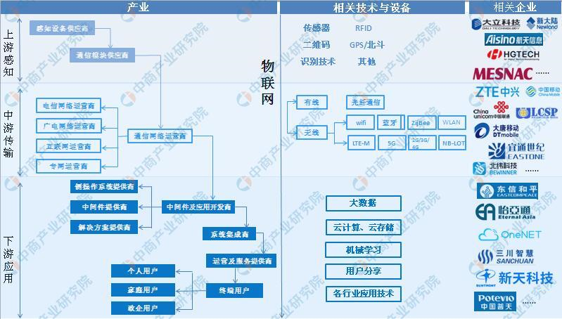 据了解,物联网正在取代移动互联网成为信息产业的主要驱动,以物联网设备为例,2017年物联网设备连接数量已经超过手机用户数量,此外,以阿里、华为、京东为首的互联网巨头企业纷纷提出自身的物联网战略。值得关注的是,全球各国尤其是美国、欧盟、日韩等发达国家高度重视物联网发展,积极进行战略布局,以期把握未来国际经济科技竞争主动权。为此中商产业研究院整理出物联网产业全景图,为广大从业者、投资者提供参考。从产业来看,物联网产业主要包括上游的感知层、中游的传输层和下游的应用层。中商产业研究院还细心地为每层产业整理出其相应的技术、设备和企业。