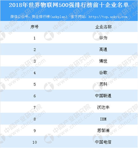 从2018世界物联网大会在北京国家会议了解到,2018世界物联网排行榜500强企业是从全球数千家物联网企业中遴选而出,涵盖工业、传感器、农业、RFID、物流物联网、医疗健康、云计算、大数据、交通、环保、机器人、芯片、半导体、人工智能、能源、智能硬件及终端、网络通信等领域的企业。据榜单显示,进入榜单前十的企业分别是:华为、高通、博世、谷歌、思科、中国联通、沃达丰、IBM、恩智浦和中国电信。前十中,华为稳居榜首,可见,未来物流网发展,中国市场可期,中国技术可盼。