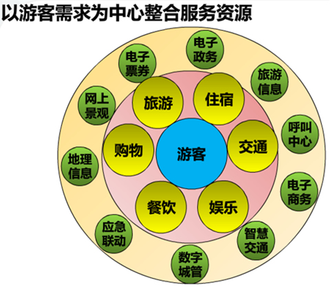 提升在食、住、行、游、购、娱每个旅游消费环节中的附加值;旅游者在旅游前、旅游中、旅游后,都能轻松地获取咨询、规划出行、预定票务、安排食宿、消费支出等、改善旅游体验;