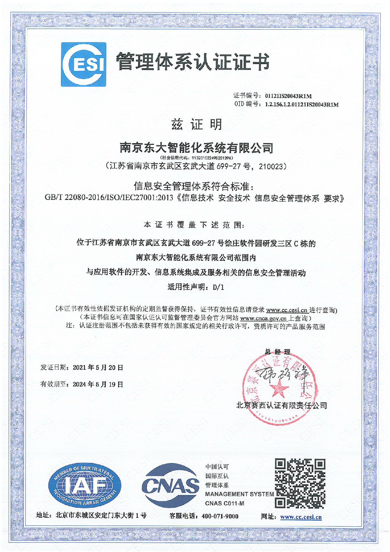 信息安全管理体系证书