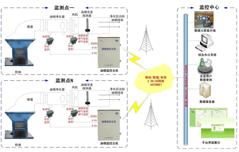 ◆采用先进的物联网技术,进行油烟排放的全过程监管;