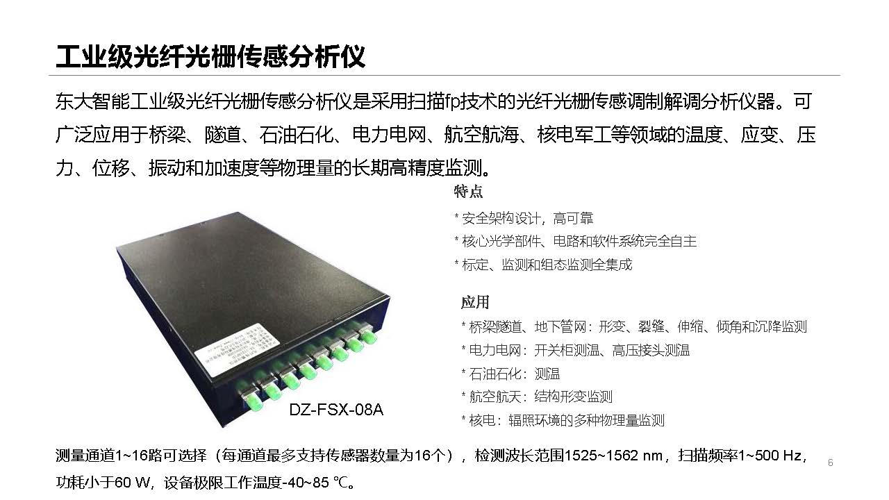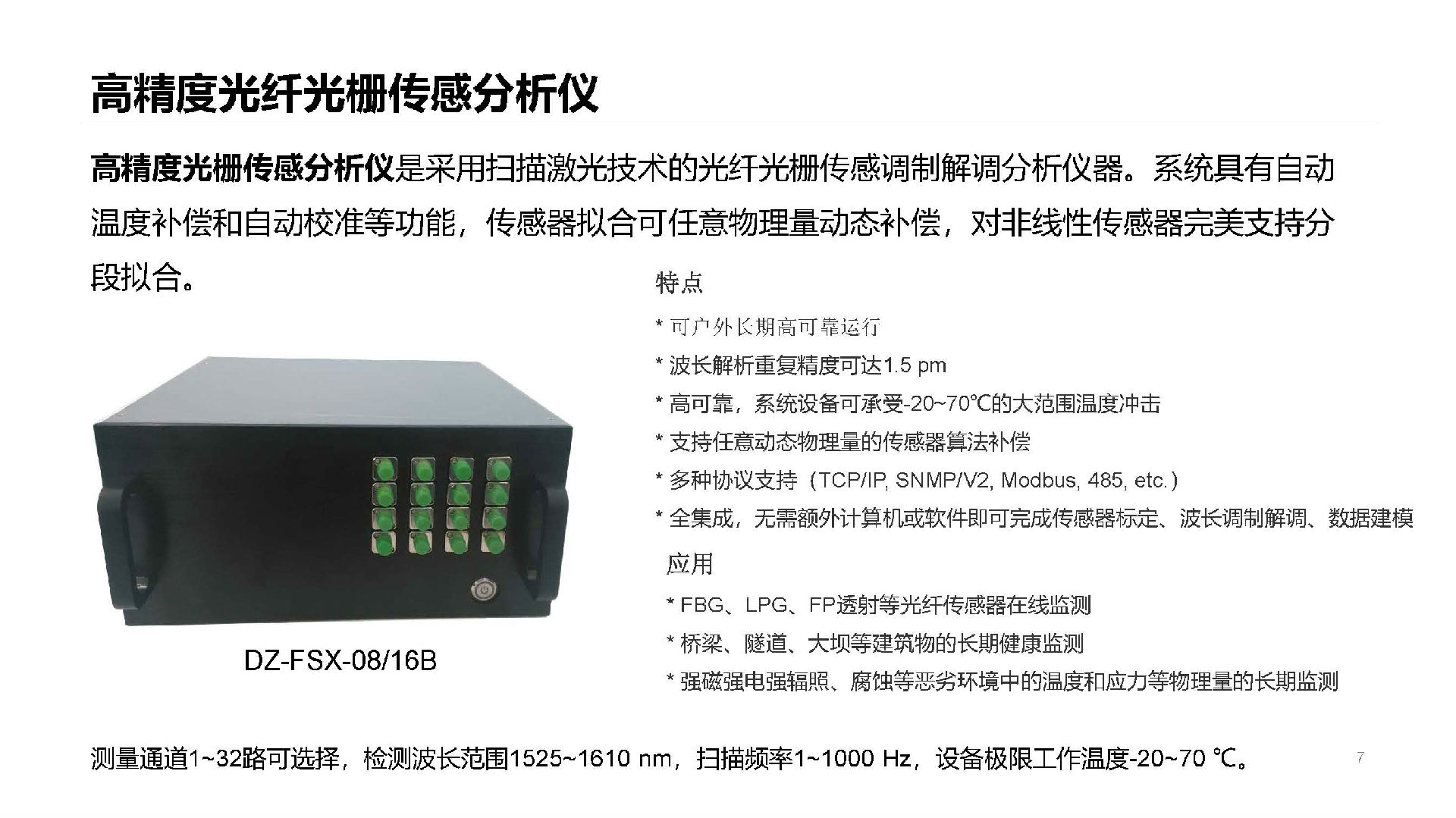 一根光纤中写入多个光栅,易于实现分布式自动化在线监测