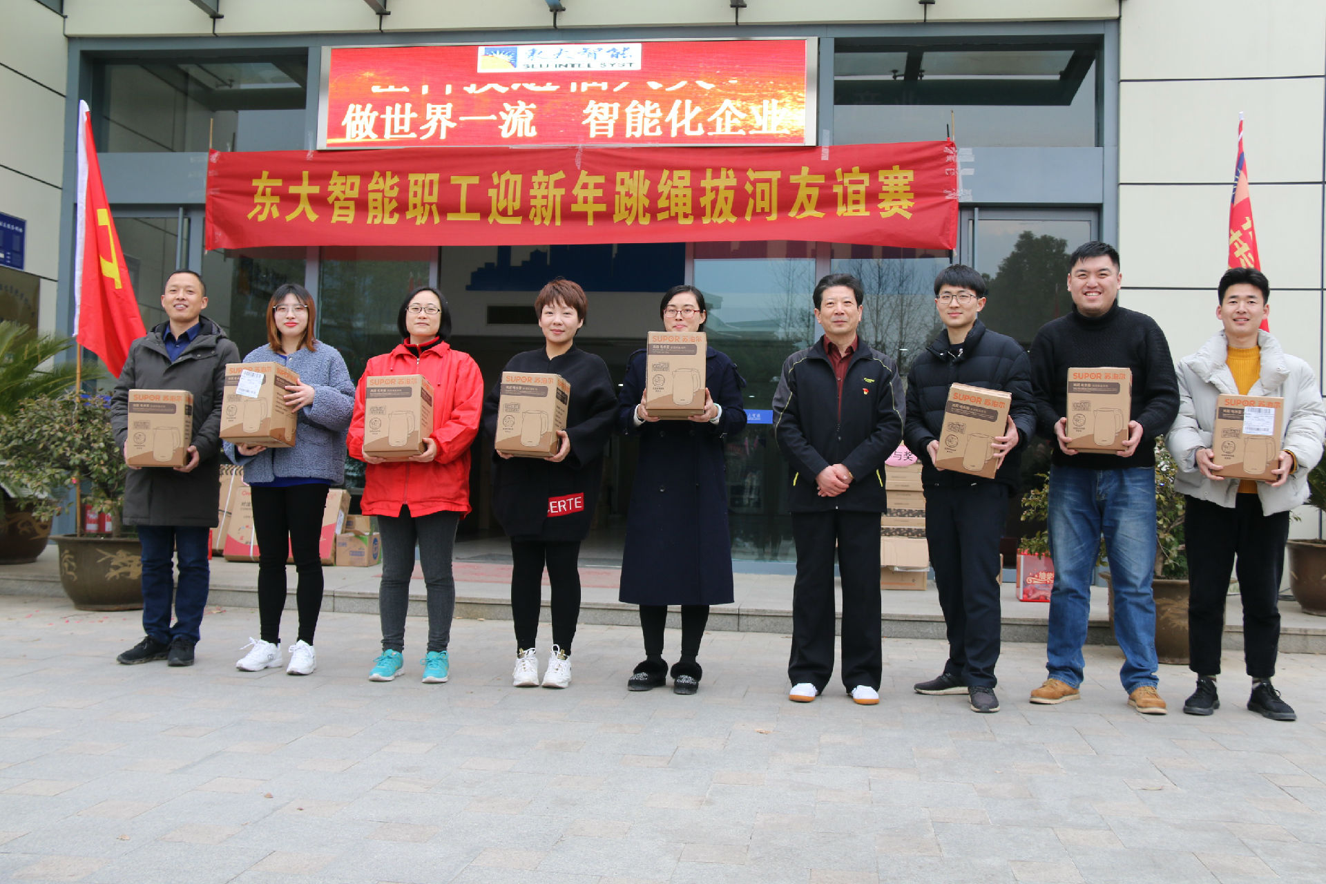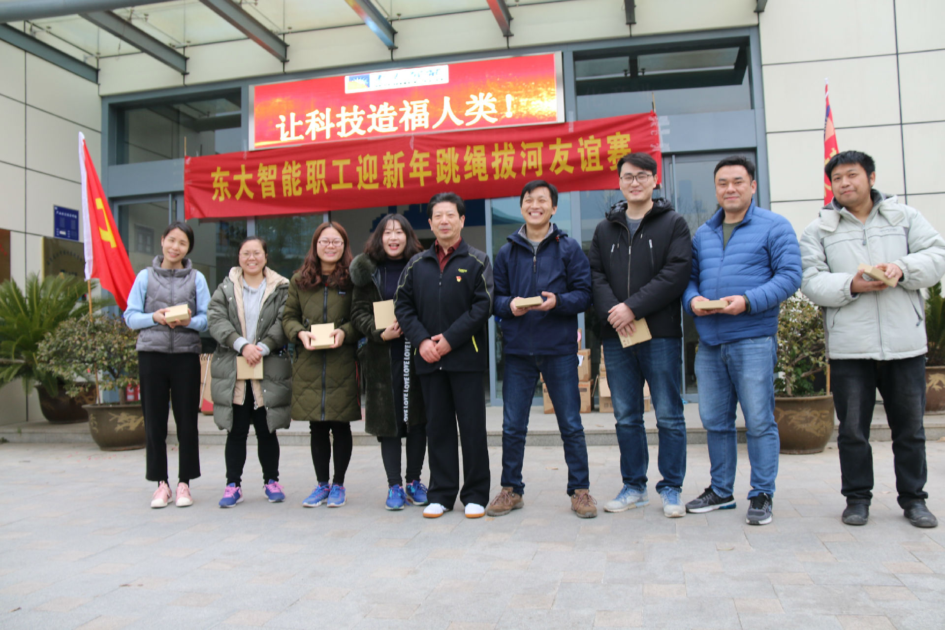 运动使人快乐,团结令人兴奋。为了丰富公司企业文化生活,促进员工之间的友谊与合作,提高团队精神,增强公司凝聚力, 2019年1月25日下午南京东大智能化系统有限公司在门前广场举行了职工迎新年跳绳拔河友谊赛活动,来自公司各部门的70多名干部员工以饱满的热情参加了本次活动,整个广场上洋溢着员工们欢乐喜庆的气氛。