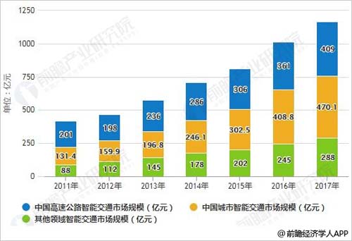 2011-2017年中国智能交通行业细分领域市场规模统计情况