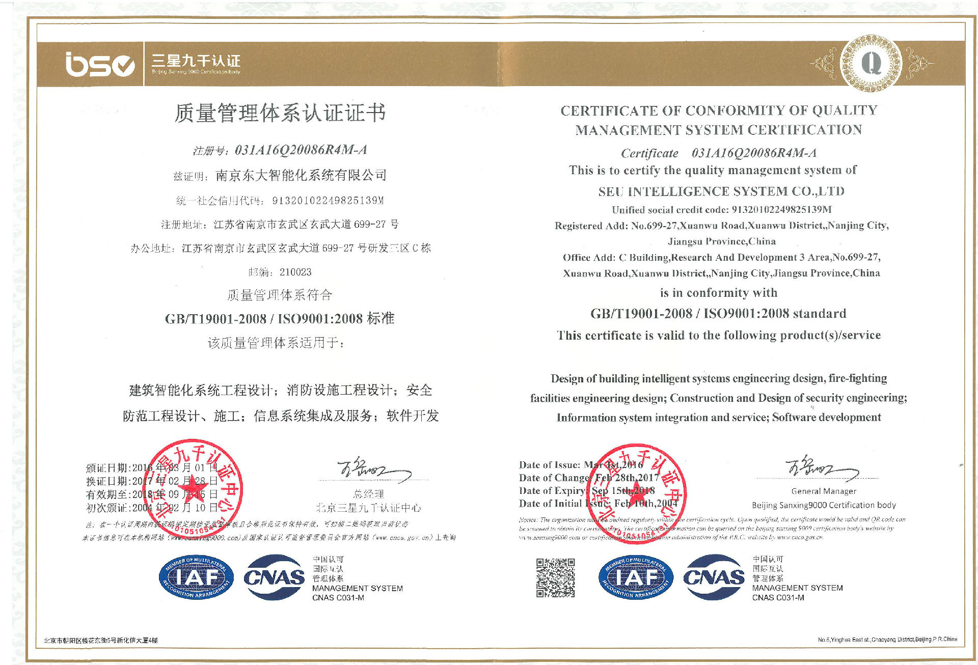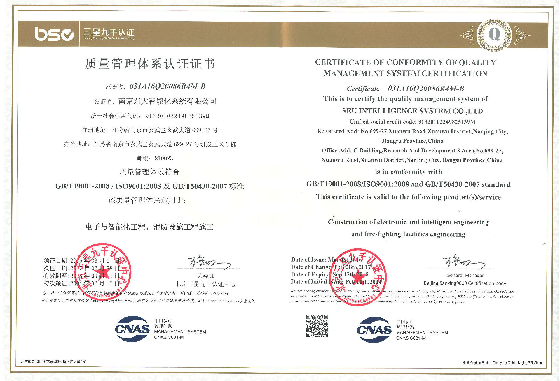 质量管理体系证书