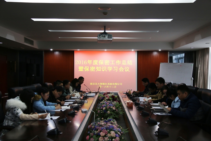 12月20日,南京东大智能化系统有限公司保密办公室组织召开2016年度保密工作总结暨保密知识学习会议,公司全体涉密人员参加了会议。