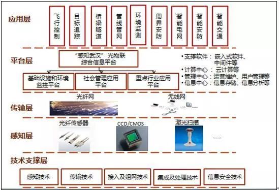 现在的物联网产业以应用层、支撑层、感知层、平台层以及传输层这五个层次构成。