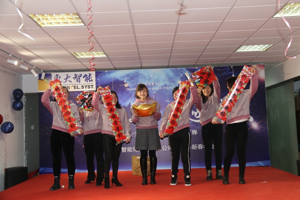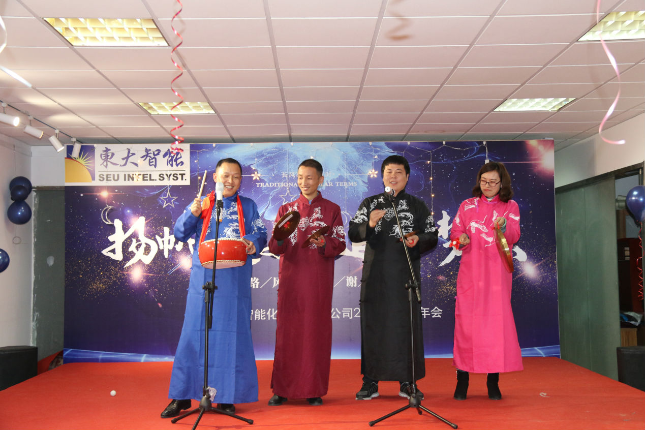 在一段青春洋溢的乒乓开场舞后,本届年会正式拉开了序幕,董事长王向宏先生首先致新春贺词。王总首先代表南京东大智能向全体干部职工致以新年的祝福,向坚守在一线岗位的员工表示深切的慰问,感谢公司各部门、各区域市场、各分公司的同志们为公司的发展做出的努力和奉献。他说,公司经历一番制度变革以后,通过全体同仁的共同努力,在2019年取得了巨大的业绩提升。新的一年,公司将面临新的挑战,希望全体同仁再接再厉,再创辉煌!最后预祝大家阖家欢乐,万事如意!