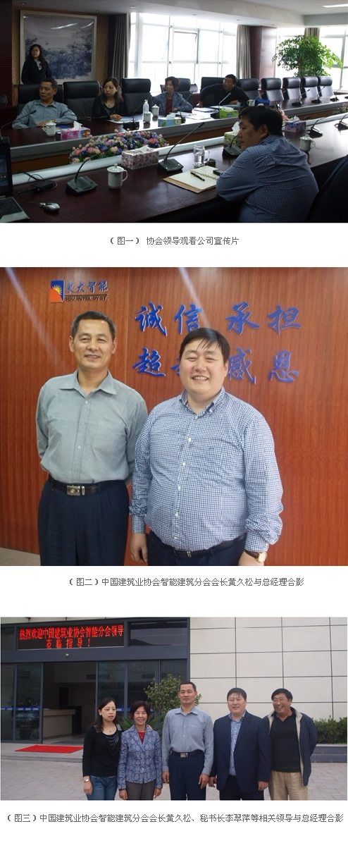 2011年11月4日中国建筑业协会智能分会会长黄久松、秘书长李翠萍和南京智能协会的相关领导来公司进行了考察指导并就公司承办《中国建筑业协会智能建筑分会2011年年会暨2012智能建筑行业发展论坛》的举办场地进行考察评估。考察领导首先观看了公司的宣传片,了解了公司的基本情况与发展愿景。对公司的发展给予了肯定,对公司的经营目标提出了一些建设性的建议,祝愿公司再创辉煌。考察结束后相关领导就公司举办此次活动的具体事宜已达成一致共识。