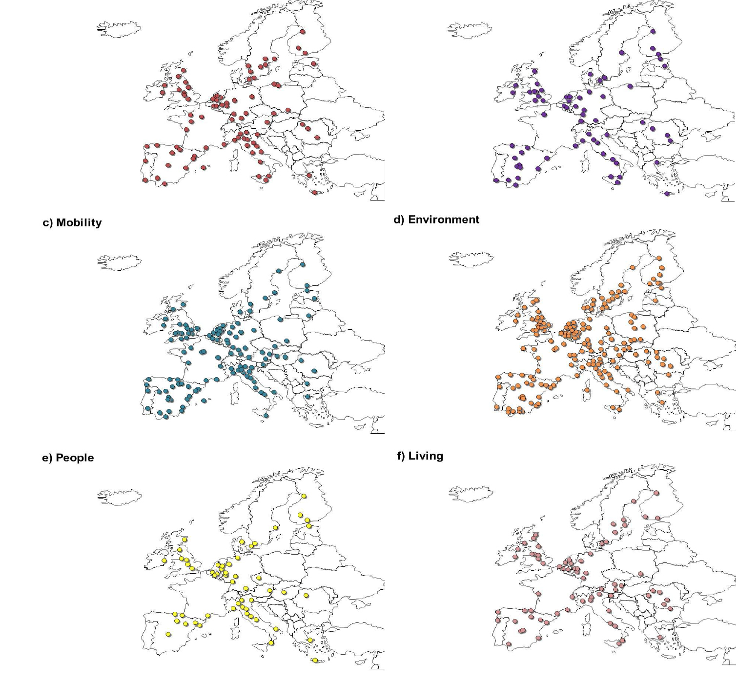 具备智慧城市六个特征的欧盟城市位置图。资料来源:Mapping Smart Cities in the EU(欧盟智慧城市报告)