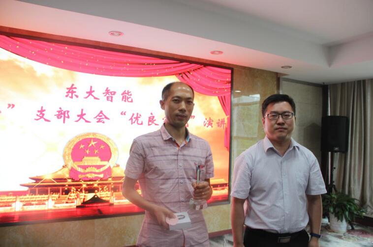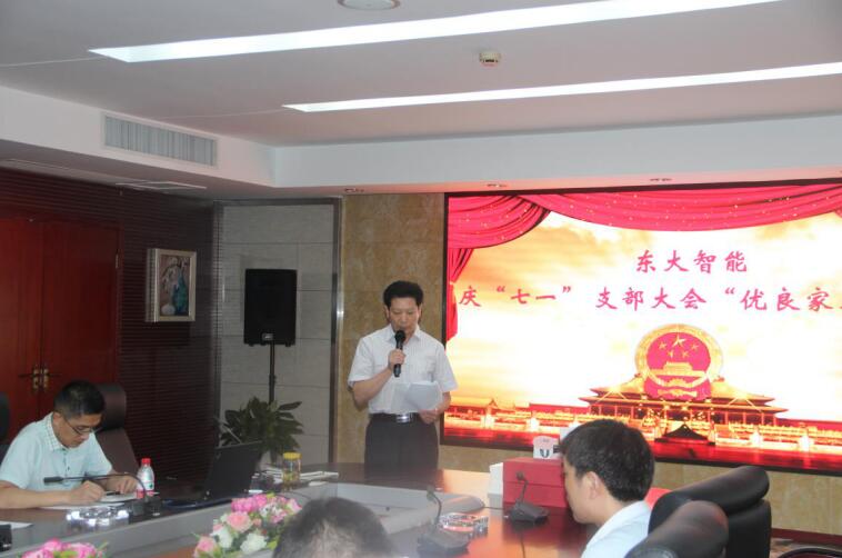 为深入推进“两学一做”学习教育常态化制度化,以优异工作成绩迎接中国共产党建党九十六周年及党的十九大召开。6月28日下午,南京东大智能党支部举办了庆“七一”支部大会“优良家风”演讲比赛。活动在公司大会议室隆重举行,公司党支部副书记苏利亚主持会议并讲话,徐庄软件园党群科赵晓磊、党建指导员卢亚出席会议,公司董事长王向宏及常务副总裁宋涛参加会议。